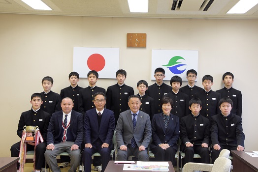 2018年1月31日 09時45分春の全国中学生ハンドボール選手権への出場が決定した 本宮第一中学校 男子ハンドボール部の出場報告会を行いました。