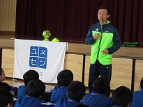 元プロサッカー選手や元陸上競技選手などが先生となり、実体験を話しながら、夢を持つこと、目標に向かって努力することの大切さを子どもたちに伝えていました。