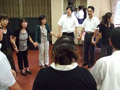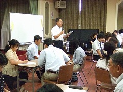 体を動かし、体験しながら、研修を進めていただいたので、あっという間の2時間でした。受講者も、学級づくりや生徒同士のコミュニケーションを高めるためのアクティビティーを体験したり、実際に協同学習を体験したりして、よさを実感することができました。また、今後の学習指導や学級づくりなどに、たいへん参考になり、活かしてみようという参加者の意欲にもつながりました。
