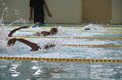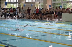 この水泳大会は、震災の影響などにより3年ぶりに開催されたもので、個人競技に164名、リレーに26チームがエントリーして開催されました。個人競技は、自由形、平泳ぎ、背泳ぎの3種目で、学年別男女別で日頃の練習の成果を競いました。
