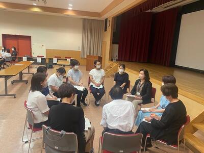 次に、各中学校区ごとに分かれて、支援学校等の教員をコーデーネーターとして、1学期効果があった支援について情報交換を行いました。