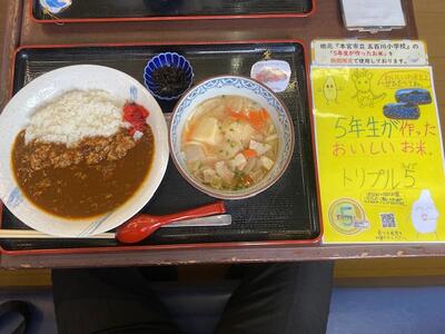 レストランの店員さんが、丁寧に「本日のメニューのライスは五百川小5年生が作ったコシヒカリです。」