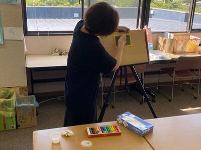 前回同様、臨床美術士の佐藤えみ子先生を講師として迎え、オイルパステルを使った作品作りを行いました。