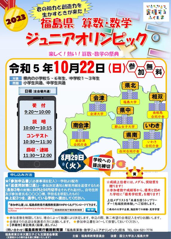 2023福島県算数・数学ジュニアオリンピック参加募集について(お知らせ)