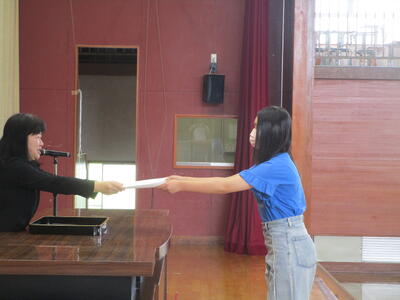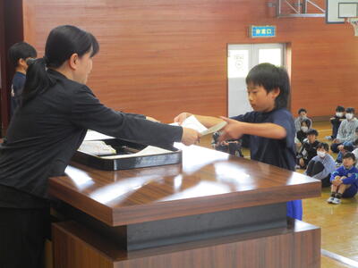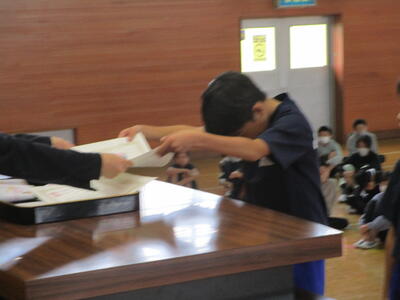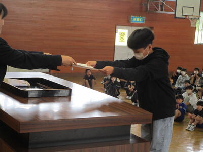 3-2は国語の時間 1年生に向けた本の紹介を練習中