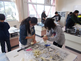 農業クラブで栽培した大根を13日に収穫いたしました。その大根を使って、19日にしみ大根作りをしました。