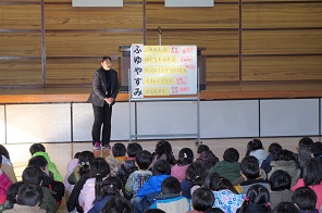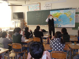 1月25日に、本宮二中の先生がいらっしゃって、6年生に英語の出前授業をしてくださいました。