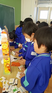 12月7日(火)、2年生39名が1年生44名を招待して、「おもちゃまつり」を開きました。