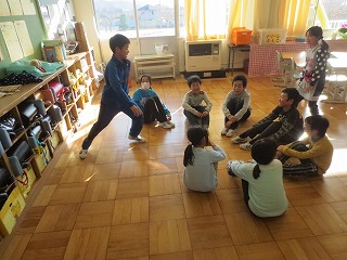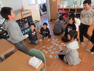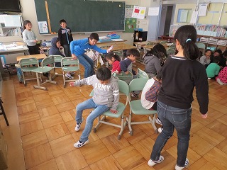 「王様じゃんけん」「もとみやカルタ」「トランプ」「UNO」「ハンカチおとし」「いす取りゲーム」など・・・。楽しい15分間でした。