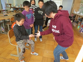 11月22日(火)、縦割りひまわり班28班で、班ごとに相談して決めた自由遊びをしました。