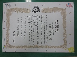 児童会では、14班各班長の手紙と「感謝状」をお渡ししました。