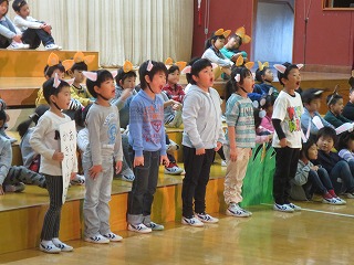 今回は、学習発表会で発表した歌を披露したり、どんぐりで作った作品をプレゼントしたりして、とても喜んでもらいました。