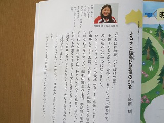 加藤和さんは、ロンドンオリンピック競泳二百メートル個人メドレーに出場し、福島県民に希望と勇気を与えました。