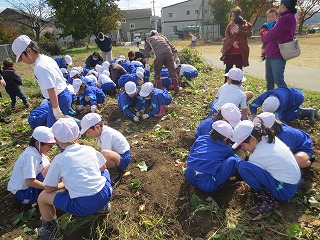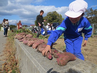 2年生の生活科サツマイモ収穫授業と、4年生の体育科持久走の授業。