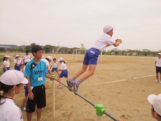 9月下旬より、「ふくしまっ子体力向上総合プロジェクトモデル校事業」により、福大生ボランティアが週1~2回来校しています。