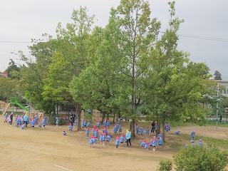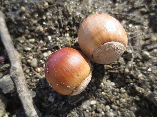 平成4年のPTA活動で整備した「みどりの丘」には、大きなクヌギの木があり、この季節になるとドングリがたくさん落ちています。
