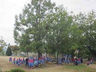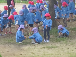 五百川幼稚園児約110名(4歳児、5歳児)が、五百川小学校の「みどりの丘」でドングリ拾いをしました。