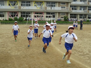 1年~3年は校庭、4年~6年は外周ひまわりコース