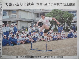 昨日、白沢運動場で第23回南達陸上方部小学校交歓競技大会が行われ、五百川小学校からは5年生38名(1名不参加)と6年生55名(2名不参加)が参加しました。