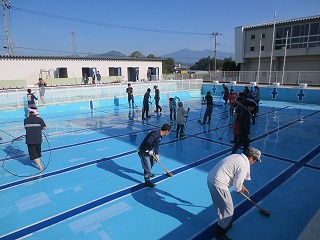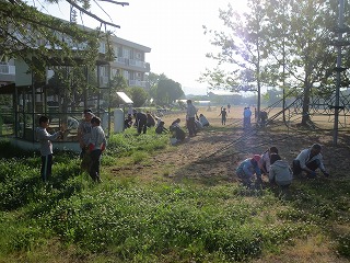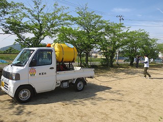 保護者と児童と教職員の約250名で、除草、プール清掃、アメシロ防除の作業を行いました。