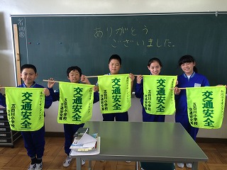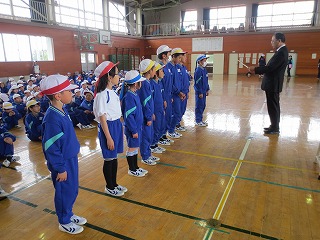 児童代表が、毎日お世話になっている交通教育専門員とふれあい安全隊の皆様にお礼のあいさつをしました。