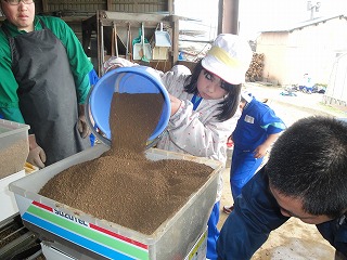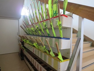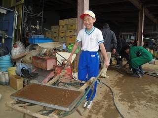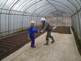 出来上がったパレットを、ビニールハウスに運びました。後藤さんのところでは、このパレットを5000個も作るそうです。