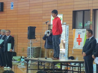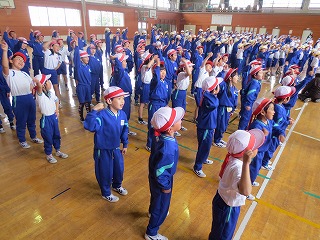 17日に行われた「第10回もとみやロードレース」の入賞者を全校生に紹介しました。