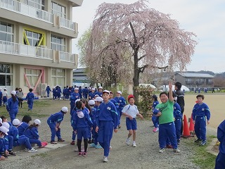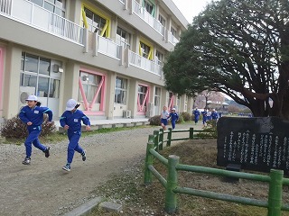 朝マラソンが始まりました。6年生も5年生も、学校を引っ張ろうとしていました。