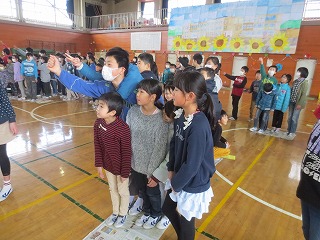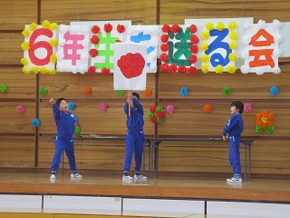 今年のテーマ曲は「YELL」。6年生からの御礼は「手紙~拝啓十五の君へ~」の替え歌による在校生へのメッセージをおくりました。