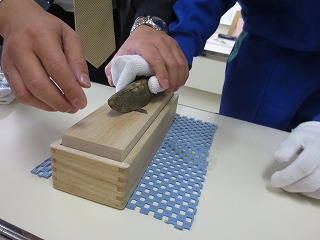 かつお節削りに挑戦!かなり力のいる仕事でした。