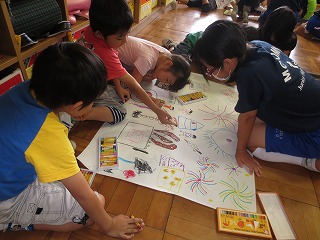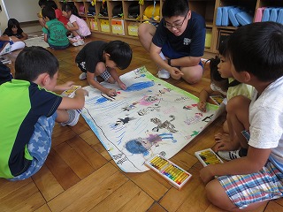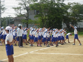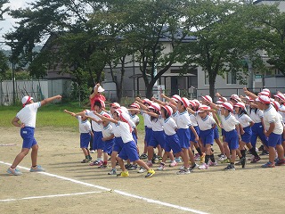 自分たちで考えたEXILEの「RISING SUN」を準備体操で踊りました。