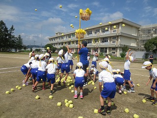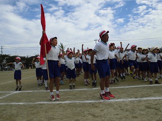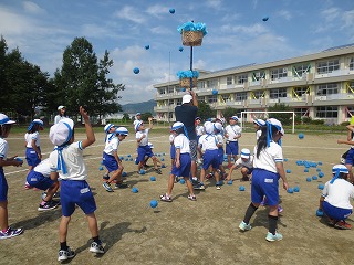 赤組・白組・黄組・青組の4色チームが、来賓と家族の応援を励みに、応援がんばり賞と総合優勝をかけて、力の限り演技しました。