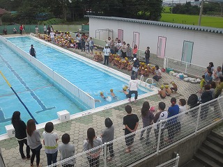 2014年9月4日 18時00分本日で、全学年の水泳記録会が無事終了し、今年度の水泳授業が終了しました。