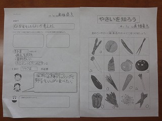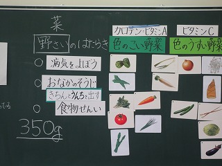 野菜のひみつ・・・「病気を予防する」「おなかをそうじする」「きちんとうんちを出す」などの野菜の主な働きを学びました。