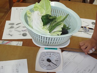 しかし、野菜は十分摂取されてなくて、子どもの一日の野菜摂取量平均が280gぐらいだそうです。武藤先生から、子どもは一日350gの野菜が必要だと教えていただき、実際にどのぐらいが350gか台秤で計ってみました。