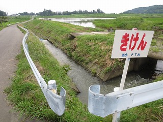 また、13日(日)にはPTA補導委員が、危険箇所の看板「きけん」の確認と、看板周辺の草刈りを行いました。学区内に危険な箇所が大変多いと再確認しました。