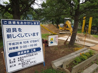 今までの遊具は全部撤去し、10月までに新しい遊具が設置されます。