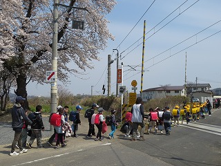 4月14日には交通教室が行われ、班ごとに道路横断や踏切横断の練習をしました。
