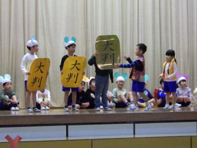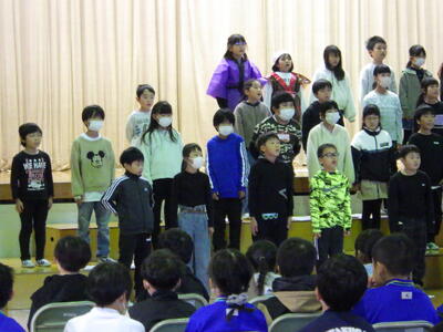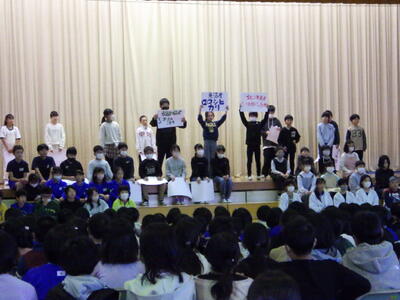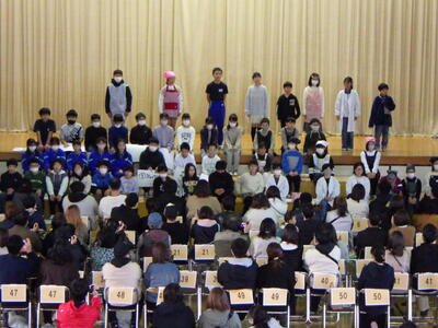 2024年12月3日 20時00分12月2日(月)は、五百川幼保園の年長さんに本校に来ていただき、1・2年生が学習発表会で披露した劇を見ていただきました。年長さんは、1・2年生の歌やダンスにあわせて、一緒に歌ったりダンスをしたりしてくれました。とてもよいリアクションをもらい、1・2年生も本番以上にノリノリで発表できました。幼保園の先生方からは「小学生になるとこんなに立派に発表できるのですね」とお褒めの言葉をいただきました。今日は1・2年生が、いつも以上にお兄さんお姉さんに見えました。