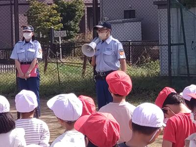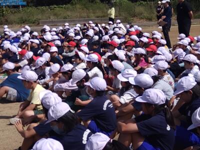 今日は避難訓練を行いました。災害はいつ起こるか分かりません。突然の災害にも対応できるように、事前の予告なしで行いました。予告していなかったにもかかわらず、子どもたちは騒がず、落ち着いて避難することができ、大変立派でした。事後には消防署の方から、火災は人のミスで起こることがほとんどなので、家の人にも気をつけるように話をしてほしいこと、火災がおきている場所から遠いところを通って逃げること、消化器などの場所や使い方を確認しておくことなど、具体的にご指導いただきました。教職員も、火災や地震の時の正しい誘導を指導していただき、大変勉強になりました。今日の訓練についてご家庭でも話していただき、火災を起こさないように注意して生活していきましょう。