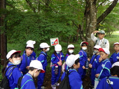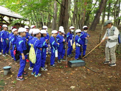 9月26日(木)は、1・2年生が森林環境学習でフォレストパークへ出かけました。森の案内人さんの案内の元、たくさんの秋を見つけることができました。