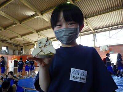 学校へ戻ってからは、森の案内人さんに教えていただきながら、木工クラフトに挑戦しました。みんな上手にできて、大満足でした。今回学んだことを生かして、今後の生活科の学習では、夏と秋の違いに気づき、それぞれの季節の良さを感じ取ってほしいと思います。