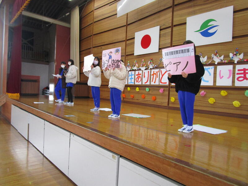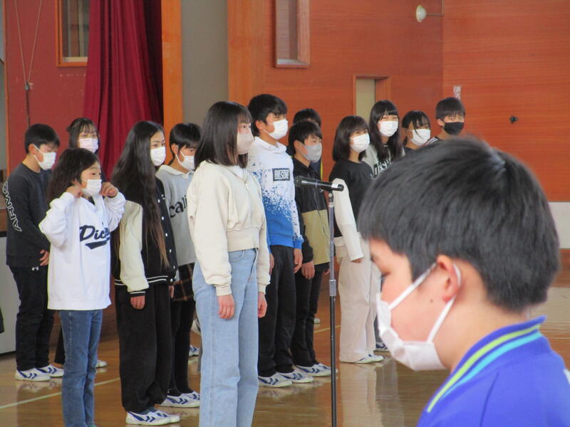 「今までありがとう」と「中学校に進学されてもがんばってください」と「私たち五百川小学校をいつまでもわすれないでください」という気持ちがとてもよく伝わってくる会でした。