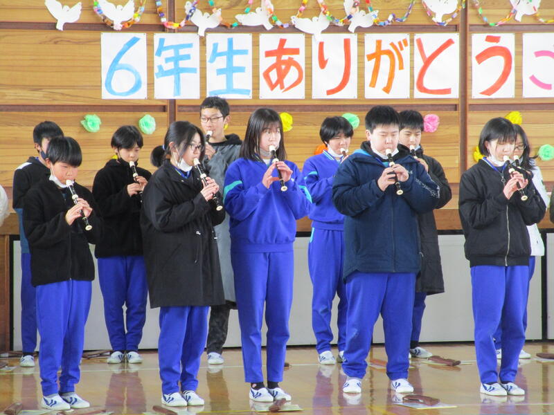最後に6年生の代表者からのお礼のことばが述べられ、「カントリーロード」のリコーダー演奏がありました。