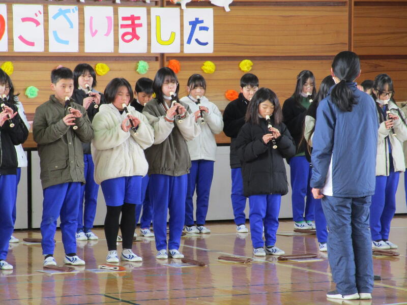 これまで6年生に教えていただいた感謝の気持ちを込めて4・5年生が演奏を披露しました。