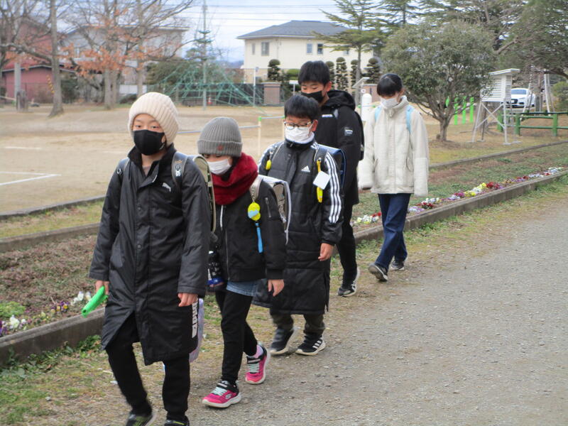 登校時刻を守って、チームワークよく、安全に登校してきてください。
