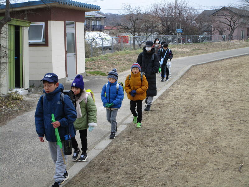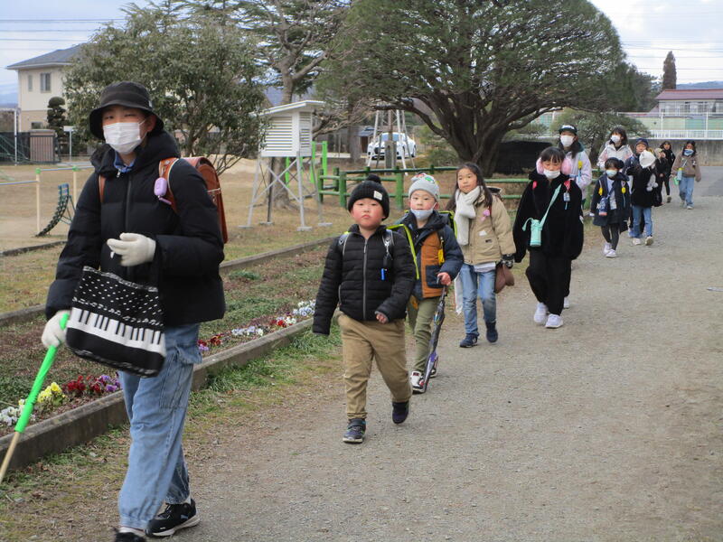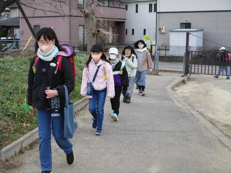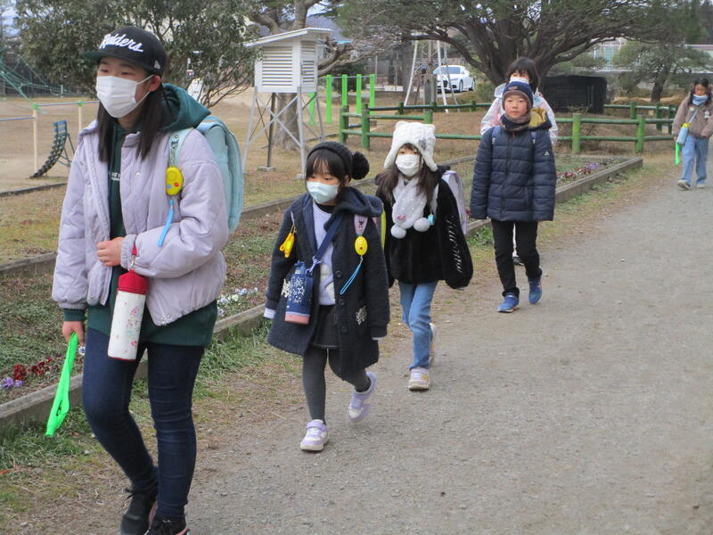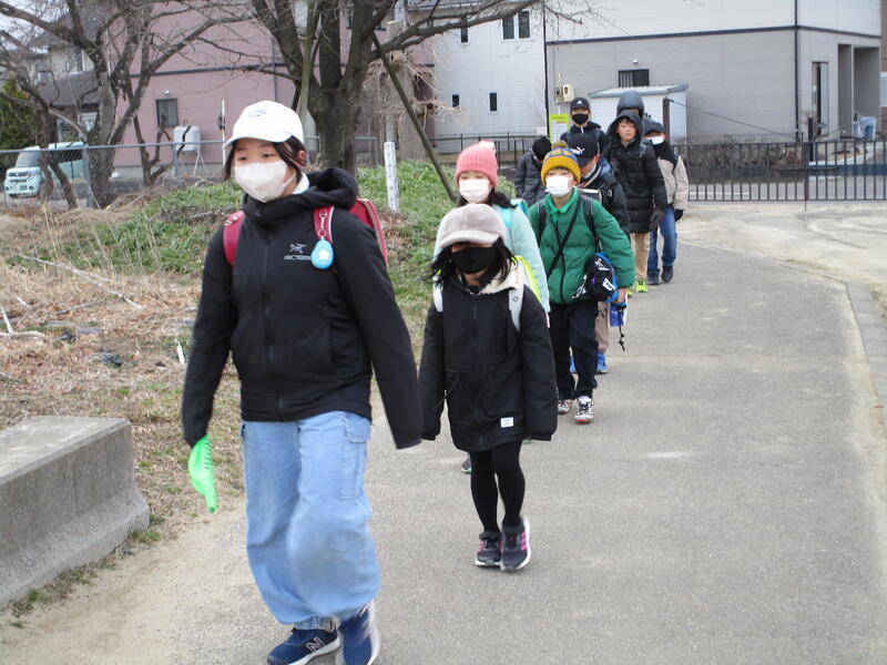 新しく班長になった子どもたちが緊張の面持ちで先頭を歩き、今まで班長だった6年生が後ろから見守るという姿が多く見られました。