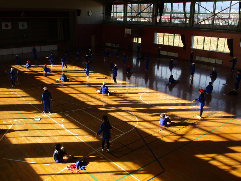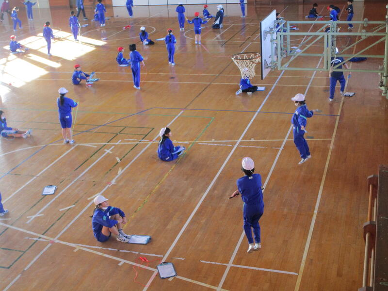 なわとび記録会に向けて自己記録に挑戦する3年生。