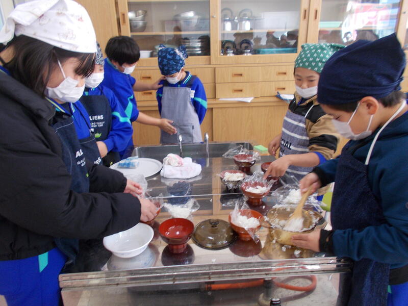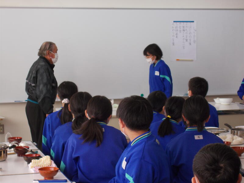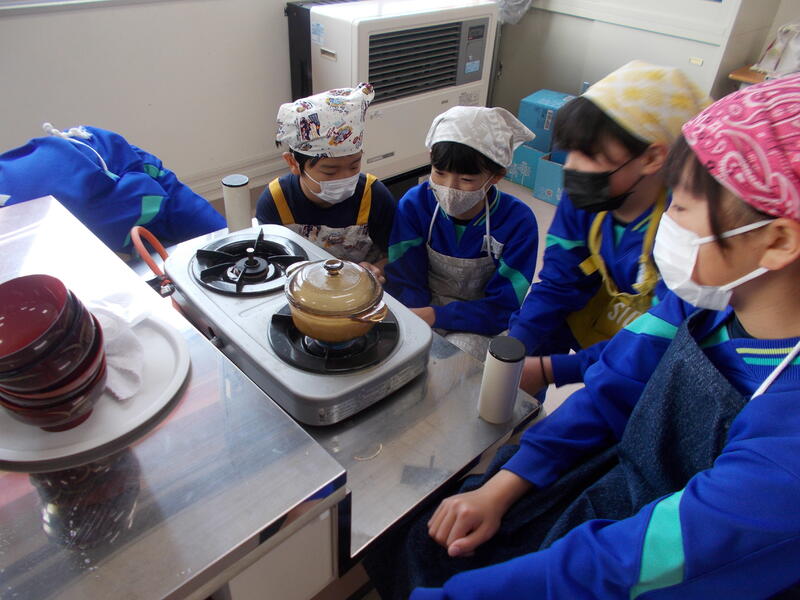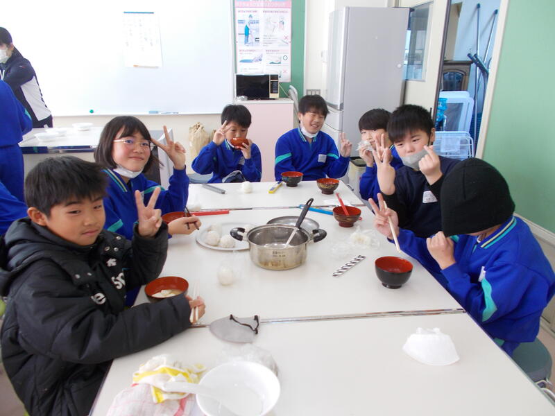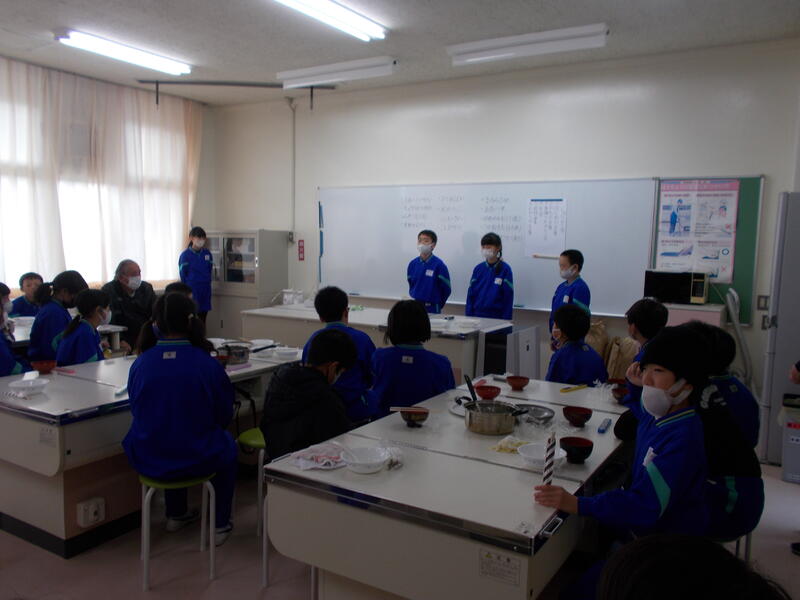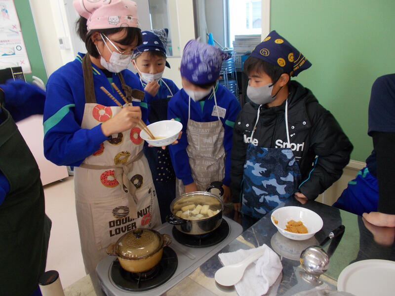 家庭科の学習を生かして油揚げと豆腐のみそ汁も作りました。