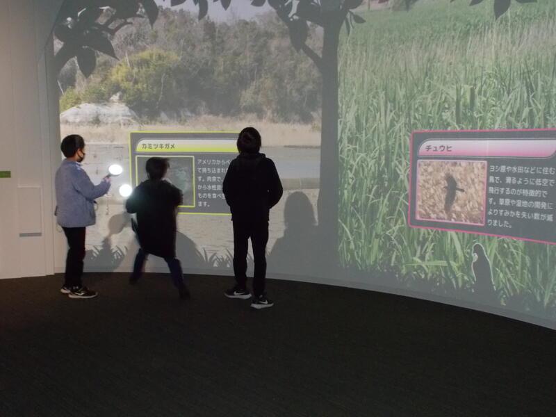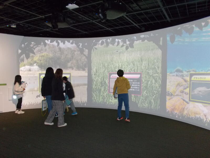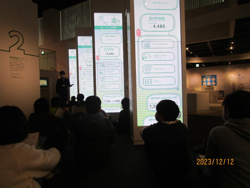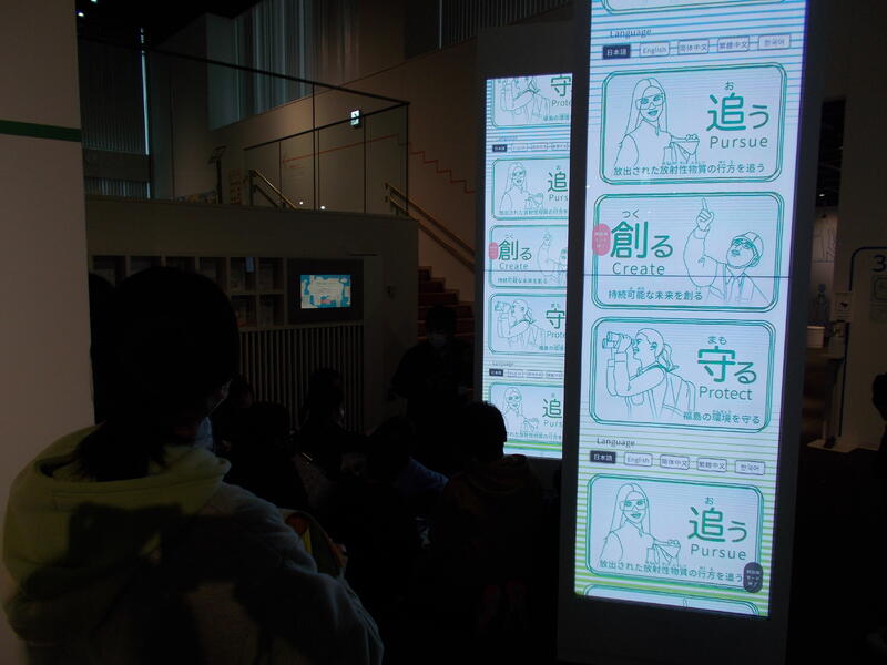 未来創造エリア原子力発電所事故の環境への影響、近年地球を脅かす様々な環境問題について、デジタル展示で紹介していました。